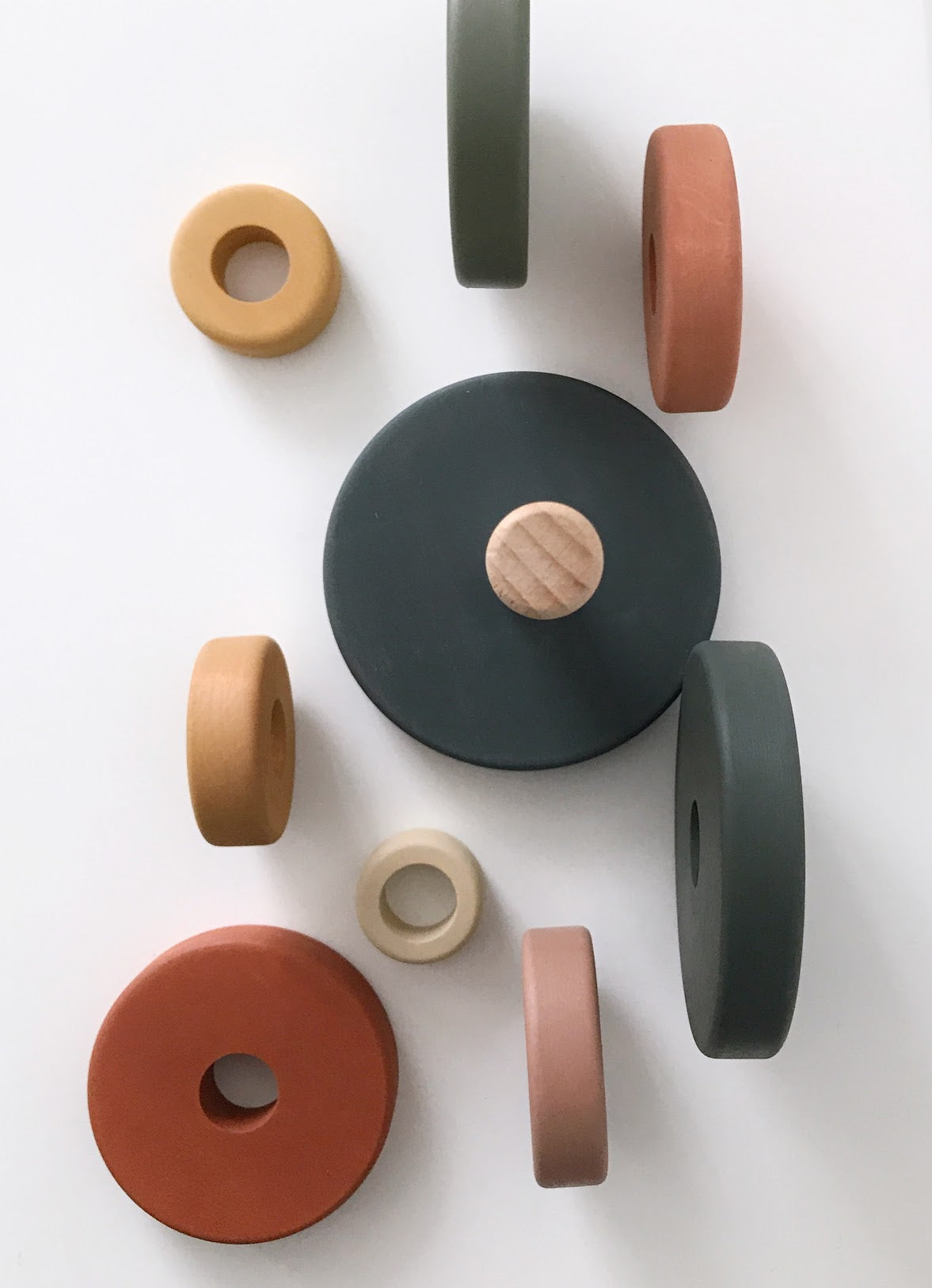 Handmade by Sabo Concept in Ukraine and painted with non-toxic, water-based paint. This stacking toy is great for hand-eye coordination.