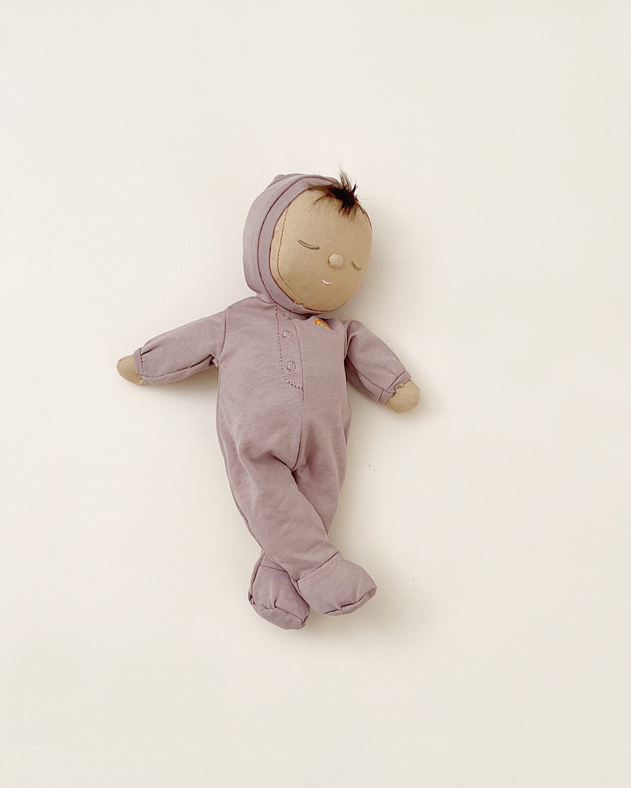 • Dozy Dinkums wear a non-removable cotton onesie with an embroidered rainbow on heart area.