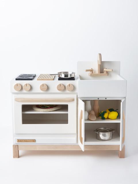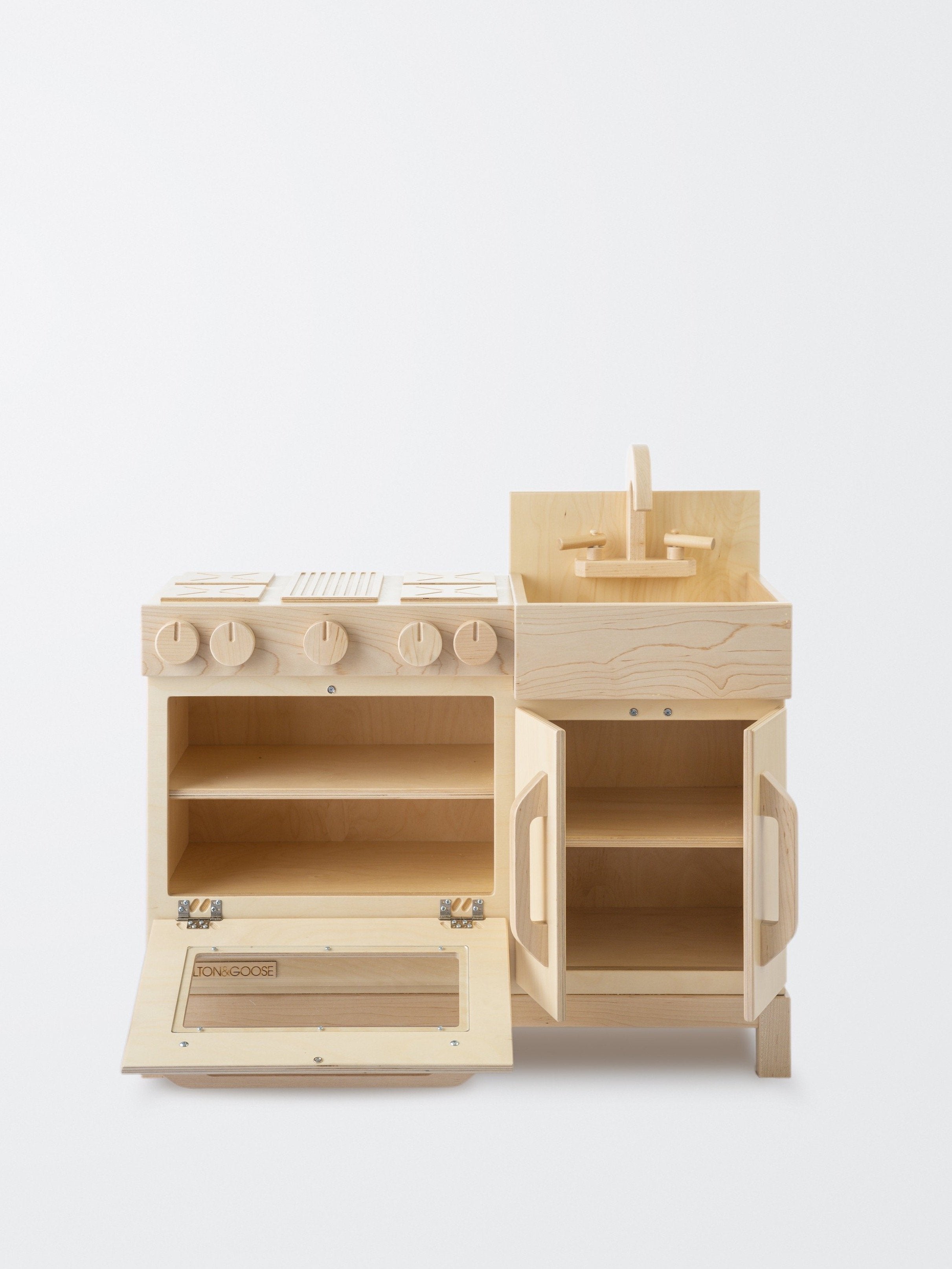 Whether your little one is whipping up an original recipe or taking first place in an imaginary cooking competition, our Essential Play Kitchen is the perfect canvas for imaginative play. A beautifully solid piece to be enjoyed day after day, our little play kitchen is as gorgeous as it is safe. Expertly crafted by Amish artisans in the USA from sustainable Baltic birch and solid North American maple, and topped with nontoxic, low-VOC, and HAPs-free finishes. Available in White, Gray, and Natural.